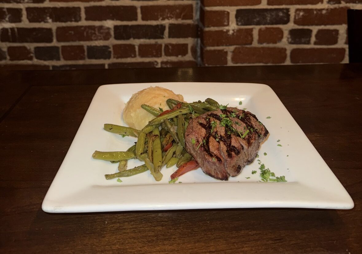 Certified Angus Beef center-cut tenderloin served with red-skin mashed potatoes and sautéed seasonal vegetables