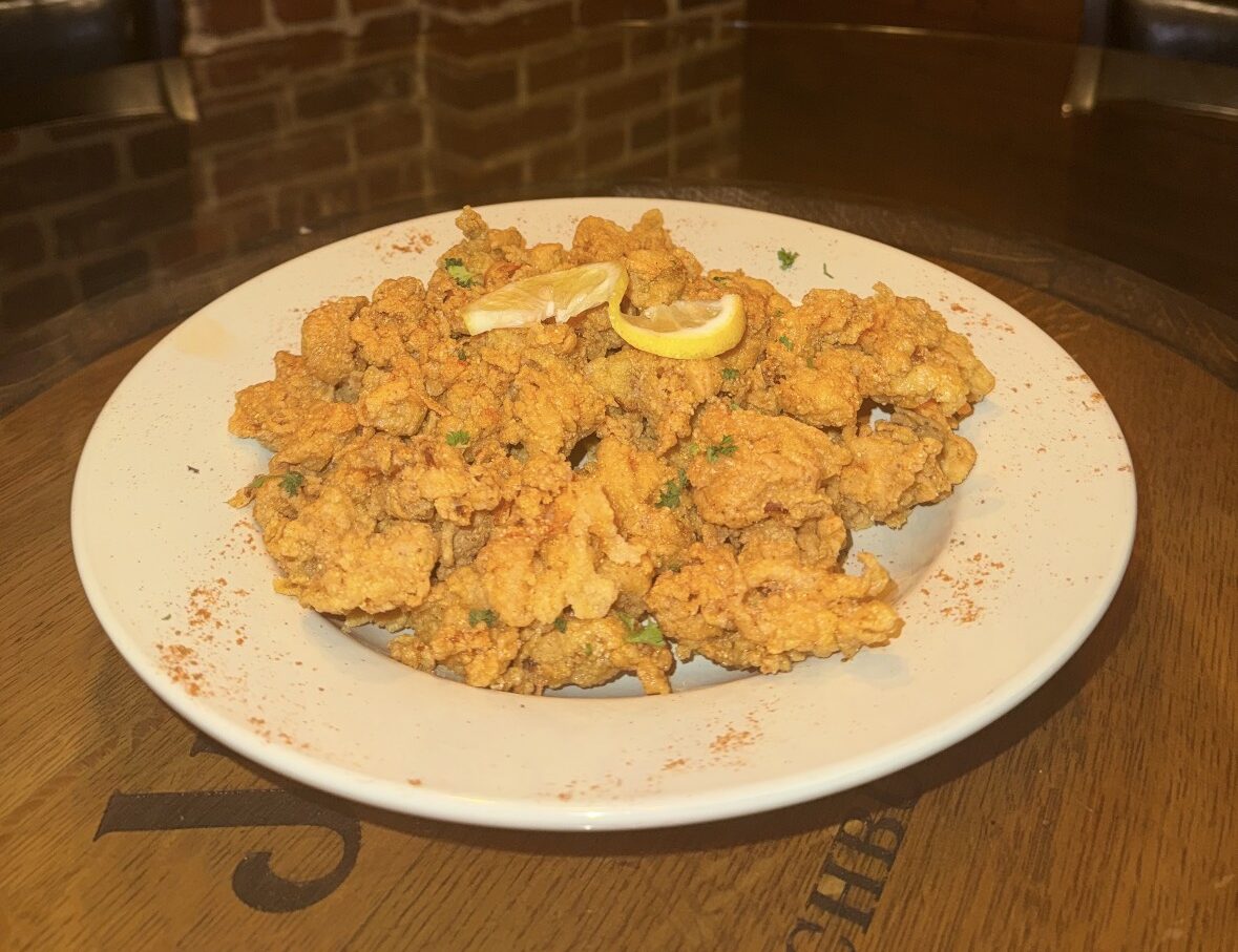 Buttermilk-battered deep-fried calamari, lightly breaded and served with cocktail sauce
