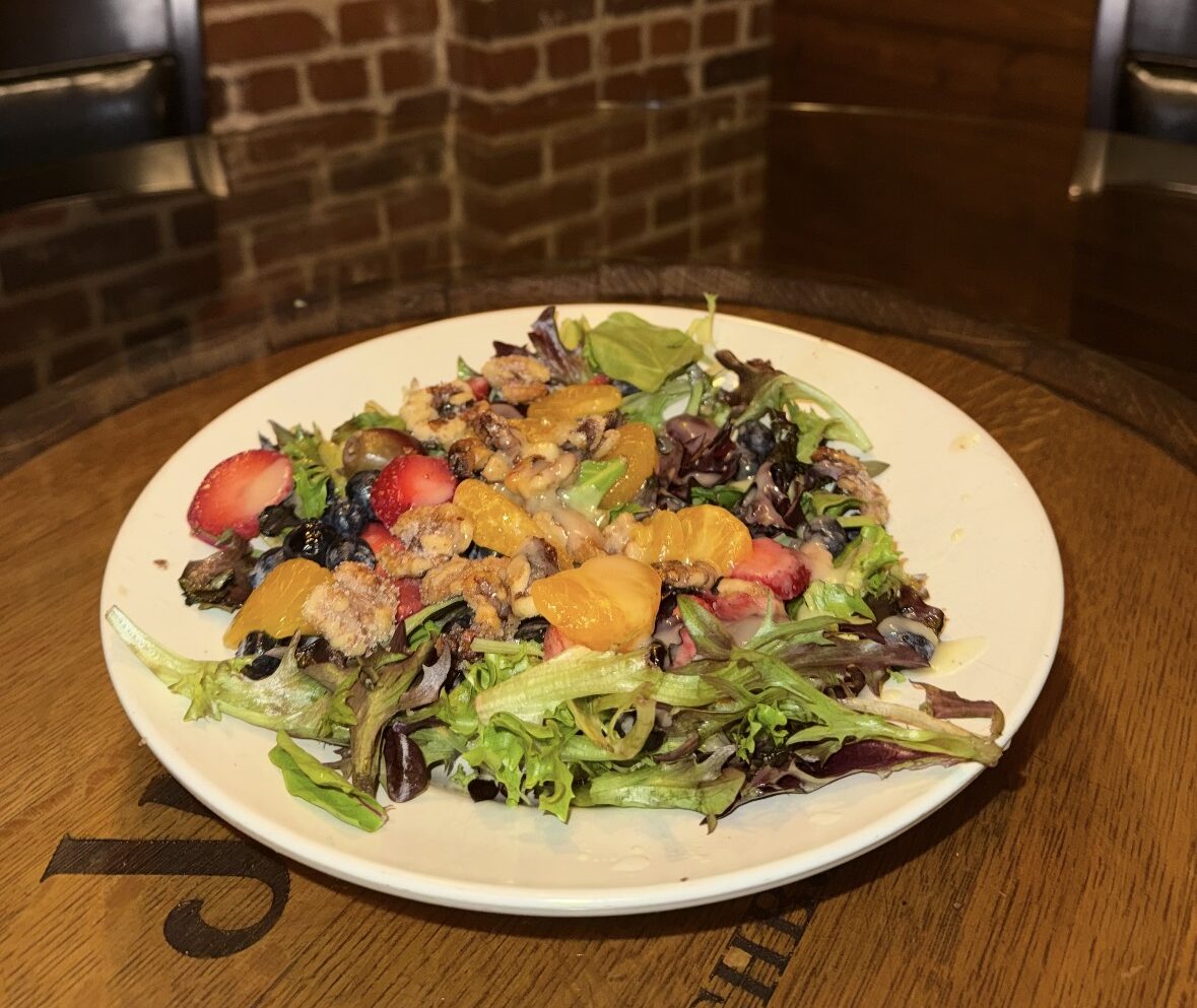 Spring mix, orange slices, strawberries, blueberries, purple grapes, and crushed candied walnuts served with house-made citrus vinaigrette. Add grilled chicken for $7. Add steak or shrimp for $14. Add tuna for $17. Add scallops for $19.