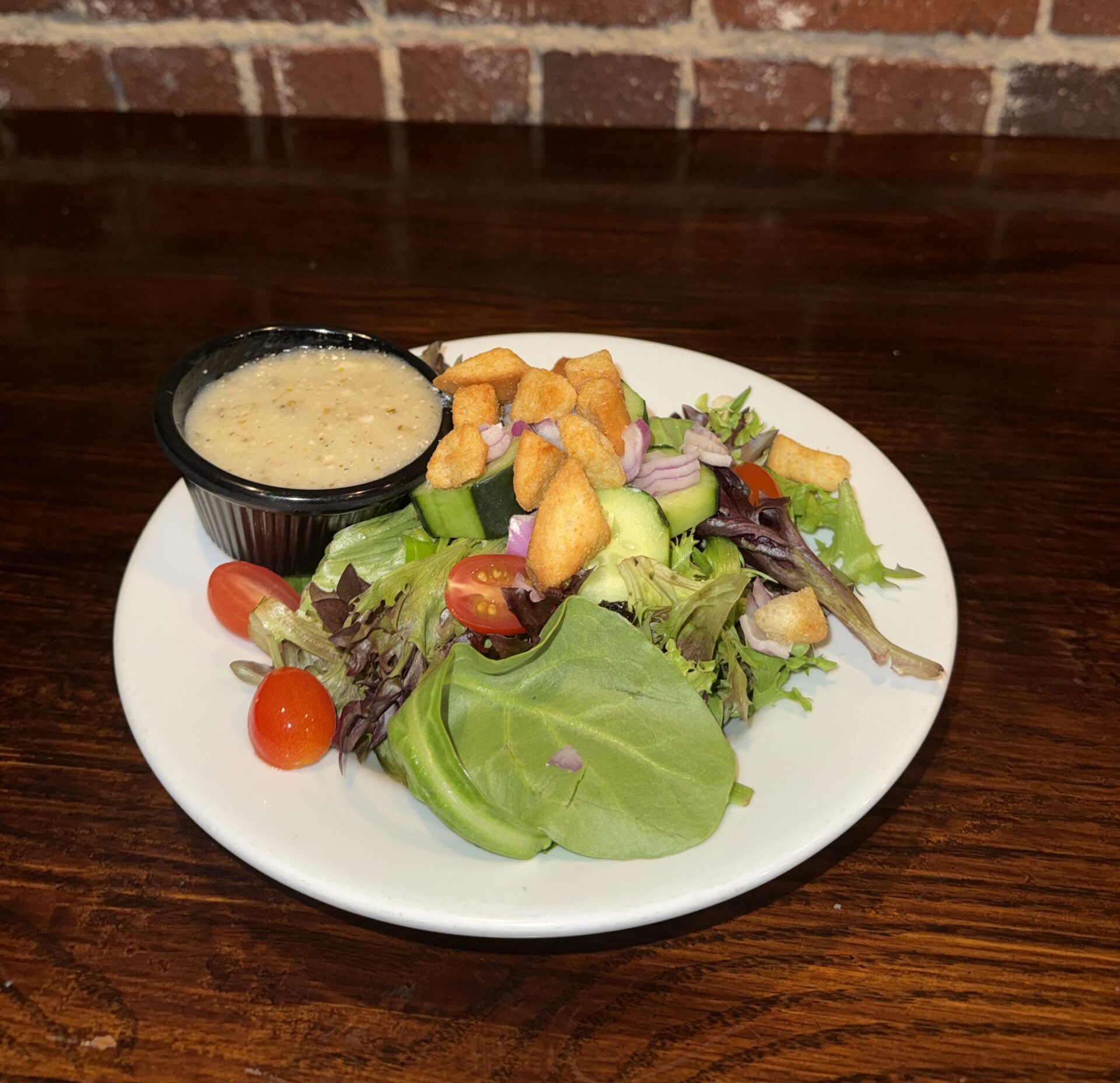 Fresh spring mix tossed in our house-made Mediterranean dressing topped with cherry red tomatoes, cucumbers, red onions and croutons. Add chicken to any salad for $7. Add steak or shrimp for $14. Add tuna for $17. Add scallops for $19.